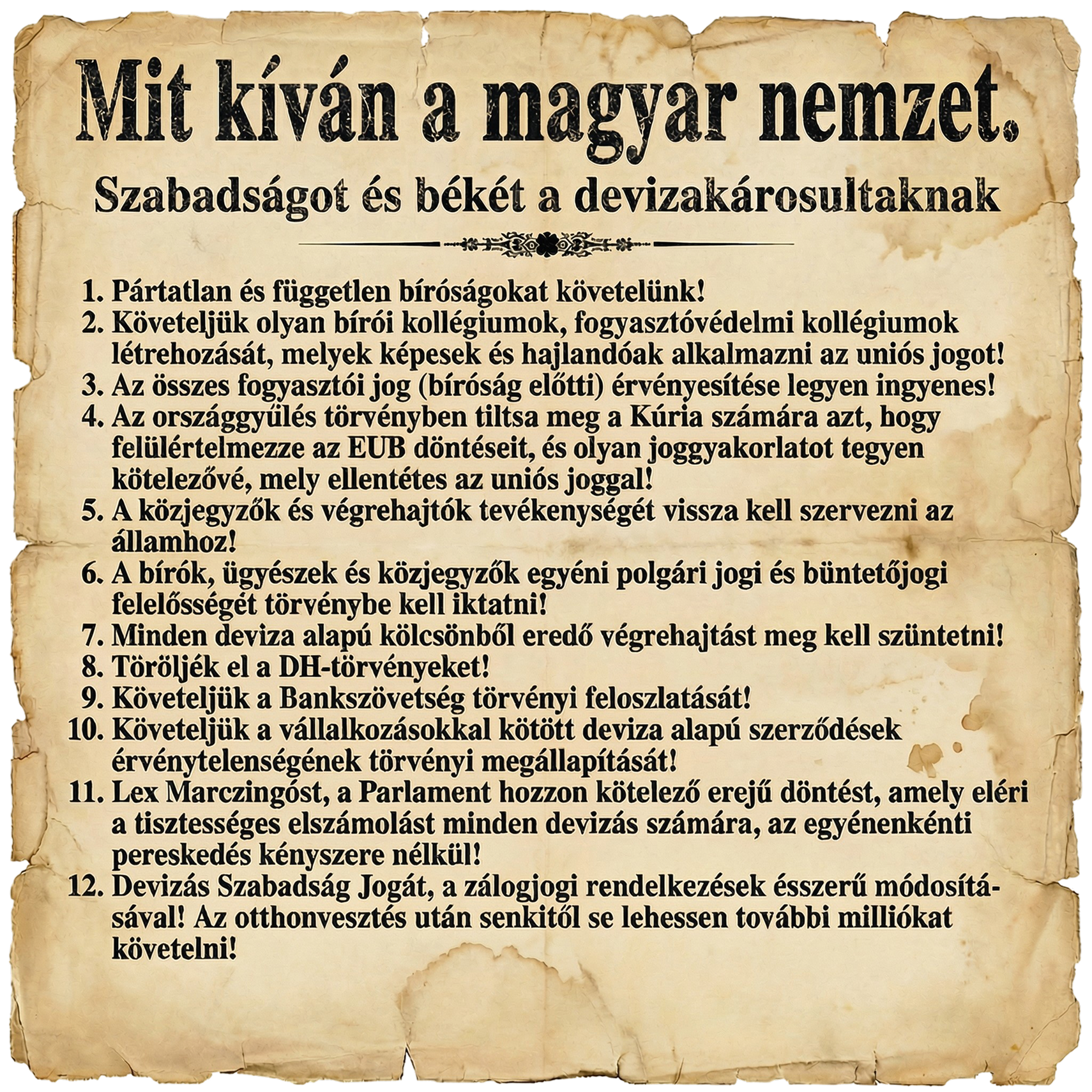 - Lex Marczingóst, a Parlament hozzon kötelező erejű döntést, amely eléri a tisztességes elszámolást minden devizás számára, az egyénenkénti pereskedés kényszere nélkül!